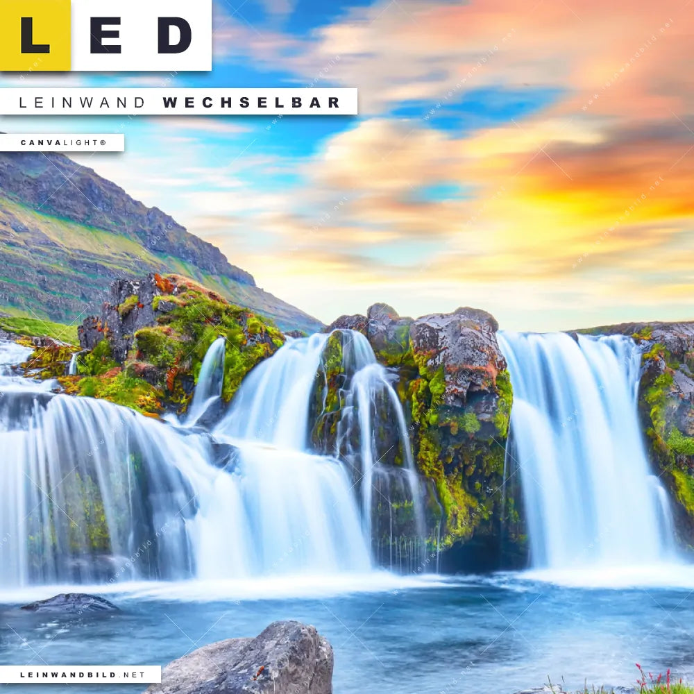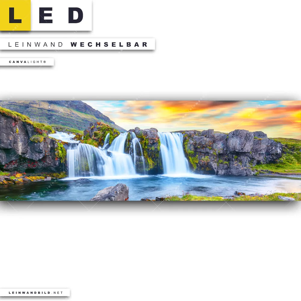 LED Leinwandbild Canvalight® TEX | Wasserfall bei Sonnenuntergang | Panorama