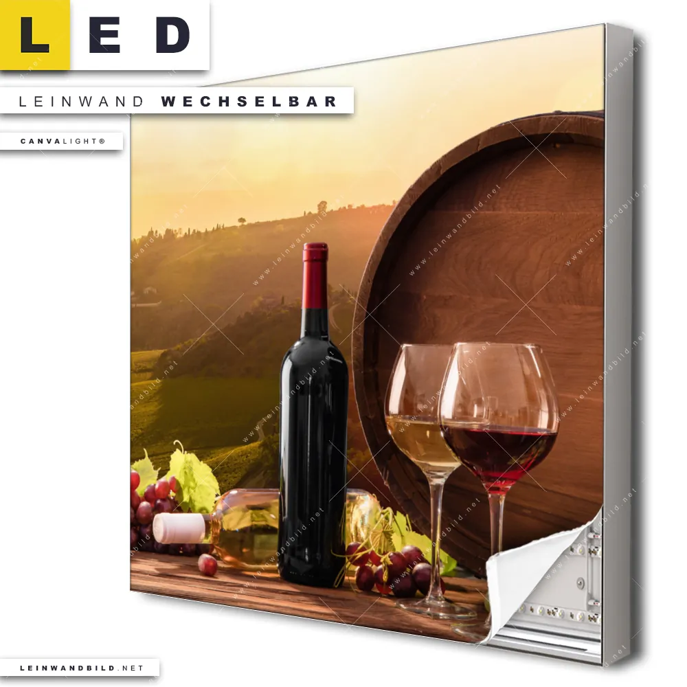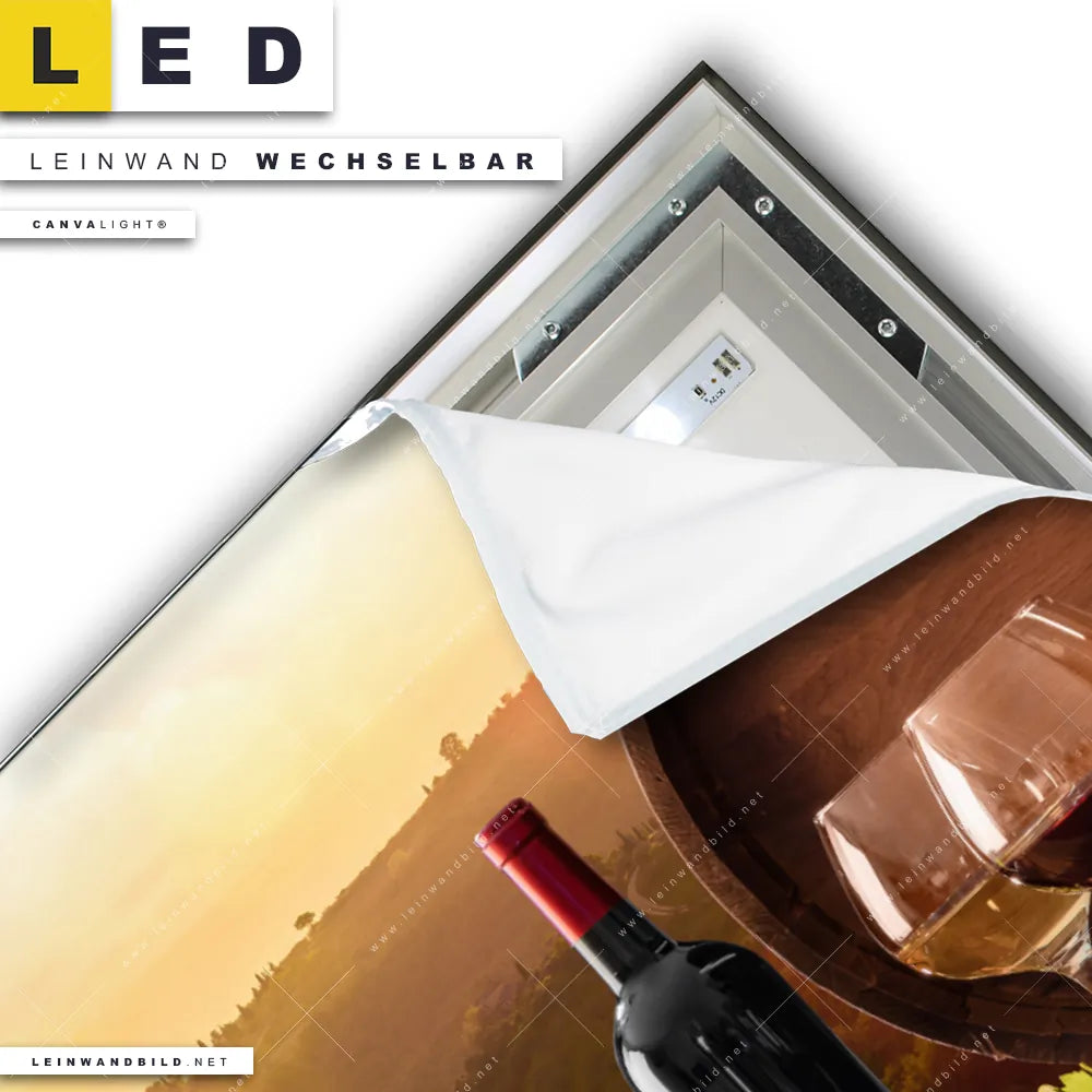 Du konfigurierst Dein individuelles LED Leinwandbild Canvalight® TEX | Wein & Toscana | Quadrat und wir produzieren es NEU für Dich. Unsere Landschaften LED Bilder mit wechselbarer Textil-Leinwand sind KEINE Lagerware. Du bist Dir unsicher, welches Motiv oder Format das richtige für dein individuelles Canvalight® Leuchtbild ist, dann helfen wir dir gerne weiter und beraten dich!