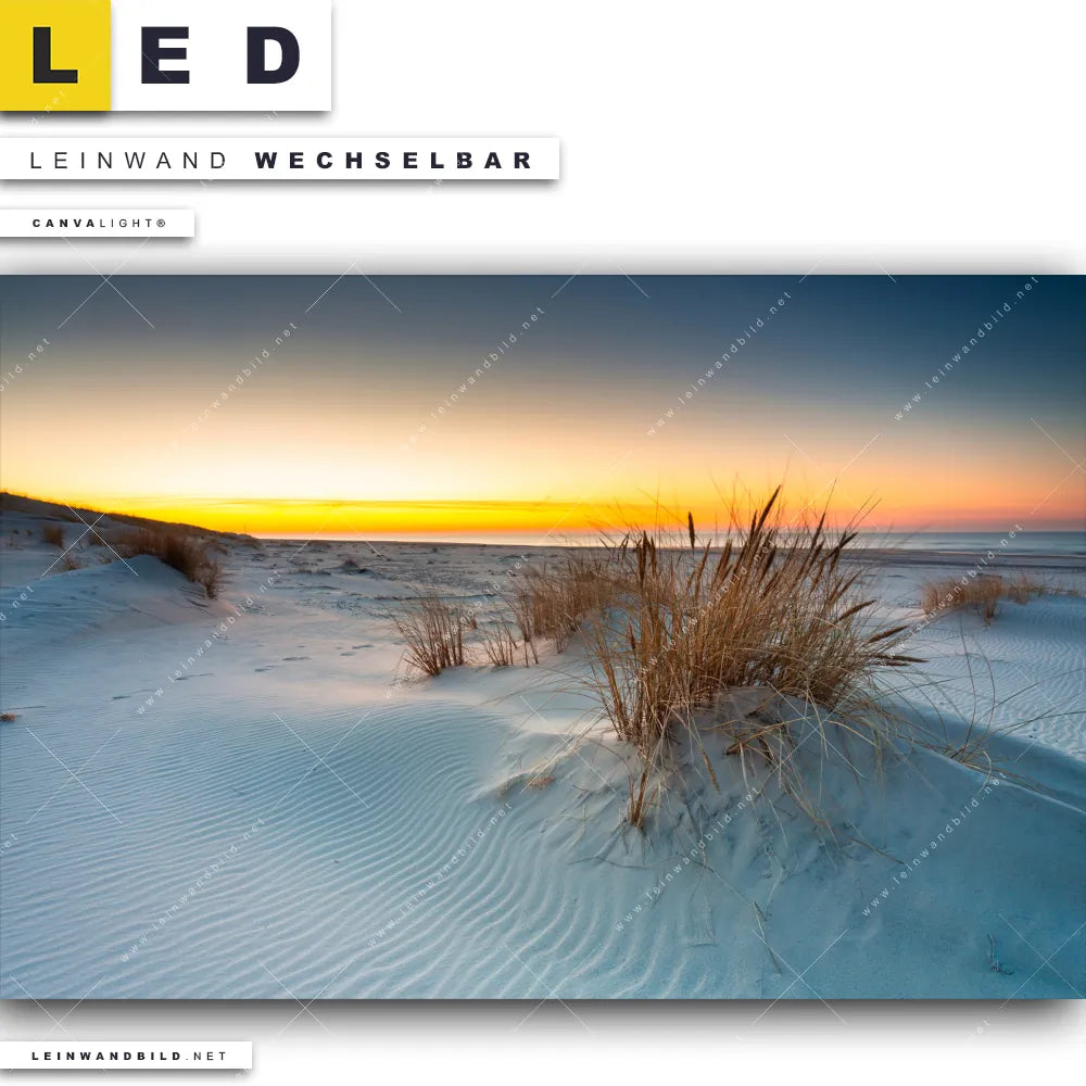Du bist auf der Suche nach einem Strand - Meer, Landschaften LED Leinwandbild im Querformat? Begriffe wie Deutschland, Sommer, Dünen, Gräser, Sonnenuntergang - Sonnenaufgang, Urlaub - Reisen, Ostsee - Nordsee haben Dich auf der Suche nach Deinem neuen XXL LED Wandbild mit wechselbarer Leinwand inspiriert? Farben wie Blau, Weiss, Orange dürfen auf Deinem neuen breiten Leinwand-LED-Bild nicht fehlen und Leuchtbilder im Natürlich - Realistisch Stil passen perfekt zu Deinem Einrichtungsstil?