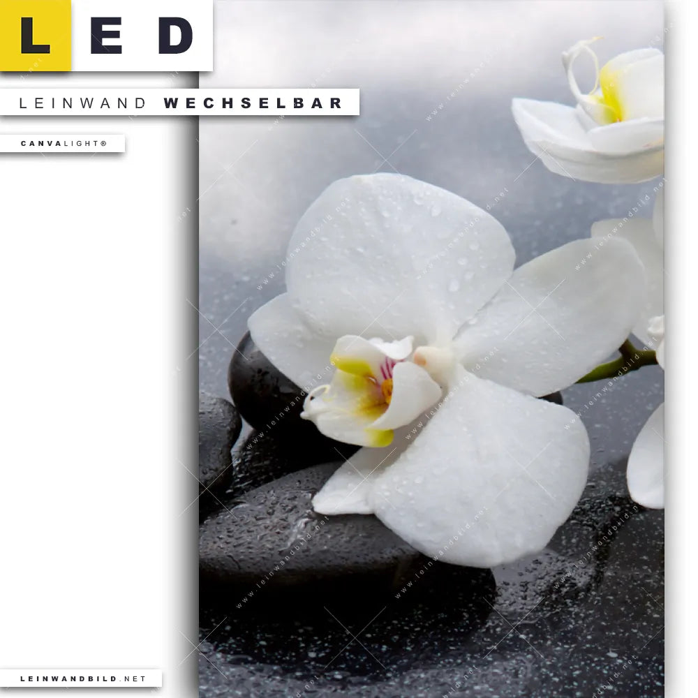 LED Leinwandbild Canvalight® TEX | Weiße Orchideen | Hochformat