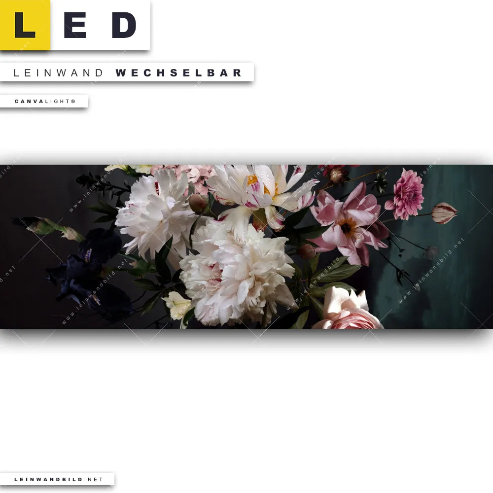 Du bist auf der Suche nach einem Blumen - Botanik LED Leinwandbild im Panorama-Format? Begriffe wie Pflanze, Natur, Blüte, Nahaufnahme, Draufsicht, vintage, Blumen, Rosen, Blüten haben Dich auf der Suche nach Deinem neuen XXL LED Wandbild mit wechselbarer Leinwand inspiriert? Farben wie Schwarz, Weiss, Rot, Rosa, Blau, Lila dürfen auf Deinem neuen extra breiten Leinwand-LED-Bild nicht fehlen und Leuchtbilder im Floral, Natürlich - Realistisch Stil passen perfekt zu Deinem Einrichtungsstil?