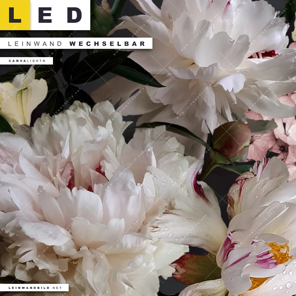 LED Leinwandbild Canvalight® TEX | Weiße Pfingstrosen | Panorama