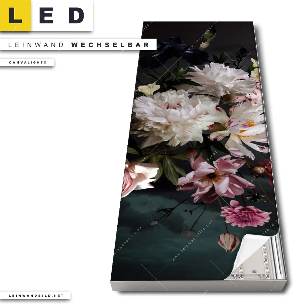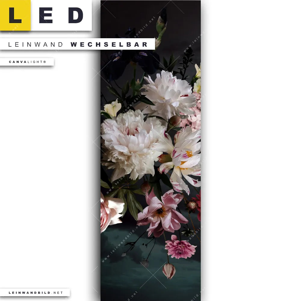 LED Leinwandbild Canvalight® TEX | Weiße Pfingstrosen | Schmal