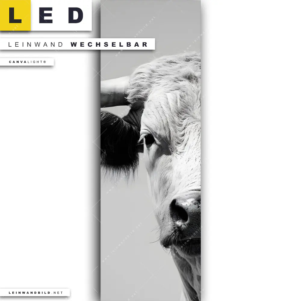 Du bist auf der Suche nach einem Tierwelt LED Leinwandbild im Schmalen Format? Begriffe wie Tier, Stier, Hochlandkuh, Highlander, Büffel, Rind, Bulle, Hochlandrind, Kuh, Ochse haben Dich auf der Suche nach Deinem neuen XXL LED Wandbild mit wechselbarer Leinwand inspiriert? Farben wie Schwarz, Weiss dürfen auf Deinem neuen Leinwand-LED-Bild im Panorama-Hochformat nicht fehlen und Leuchtbilder im Natürlich - Realistisch, Schwarz - Weiss Stil passen perfekt zu Deinem Einrichtungsstil?