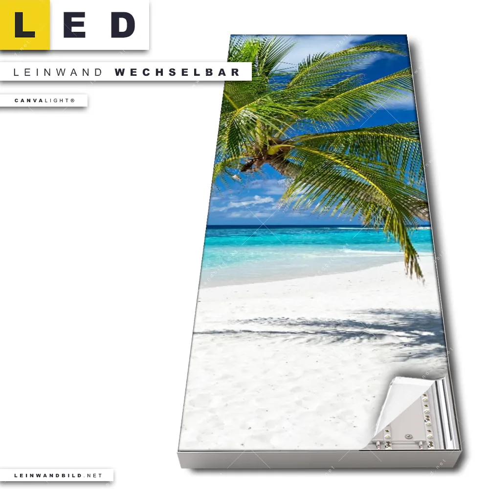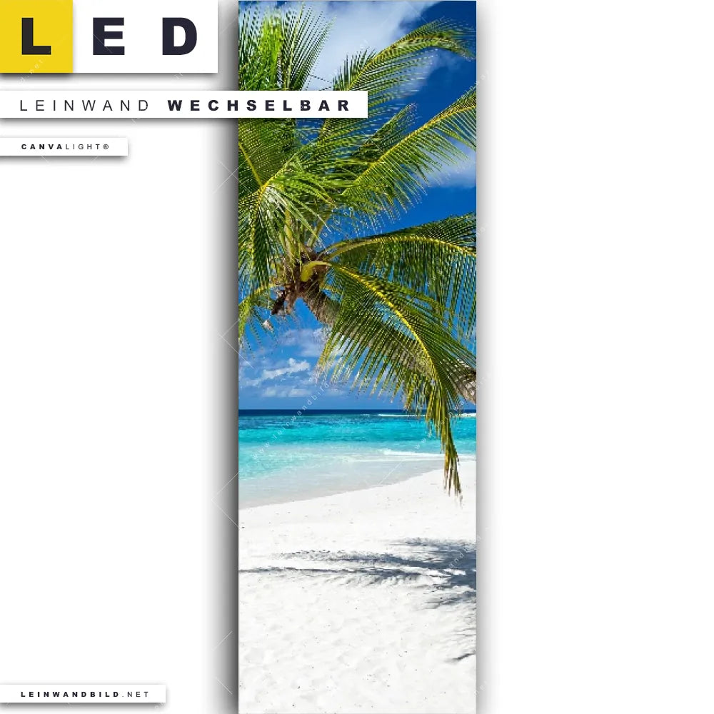 LED Leinwandbild Canvalight® TEX | Weißer Strand & Kokospalme | Schmal