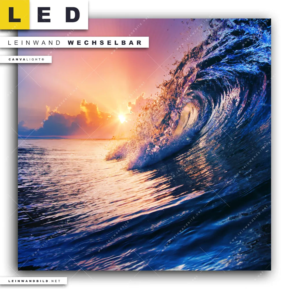 LED Leinwandbild Canvalight® TEX | Welle im Sonnenuntergang | Quadrat