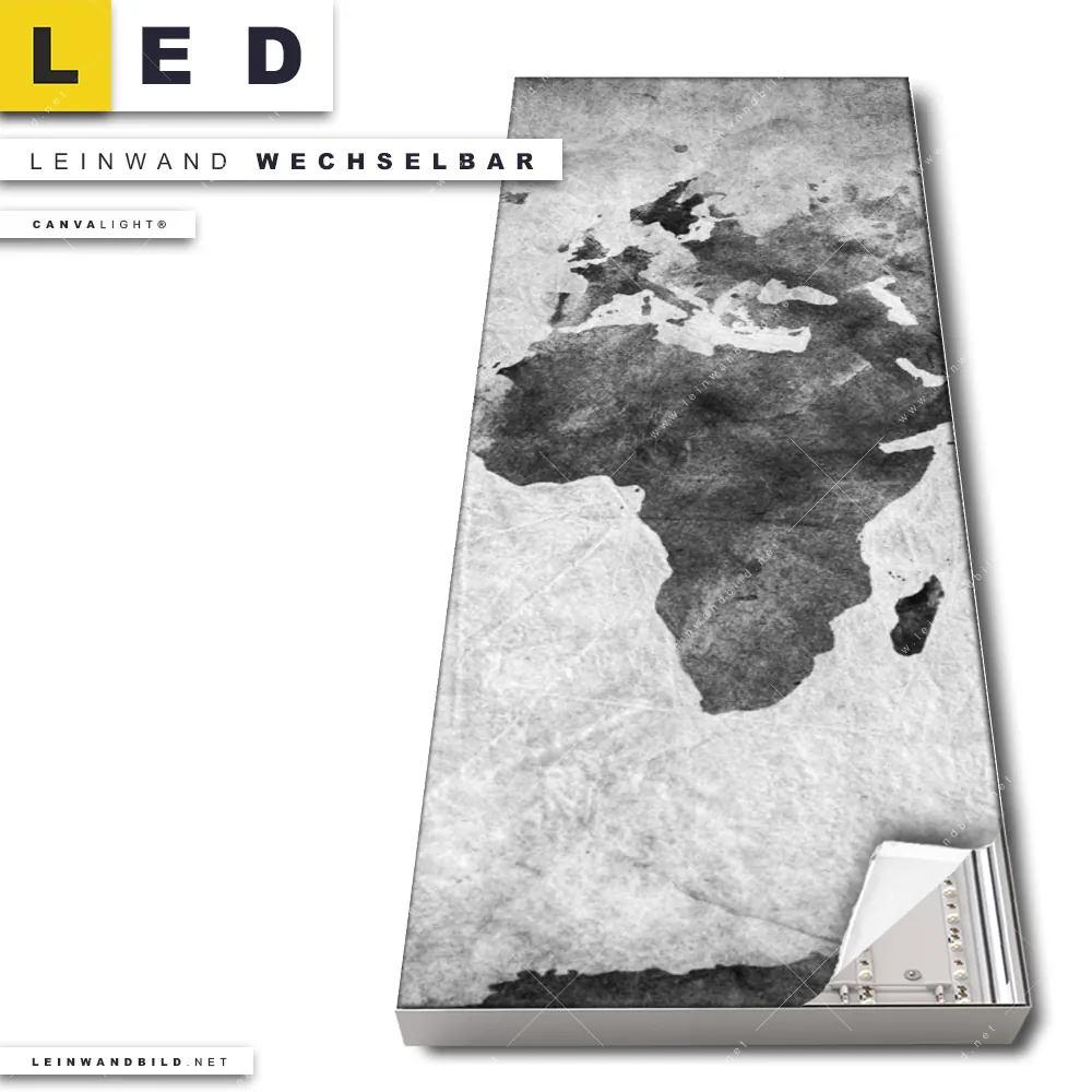 LED Leinwandbild Canvalight® TEX | Weltkarte Grautöne | Schmal