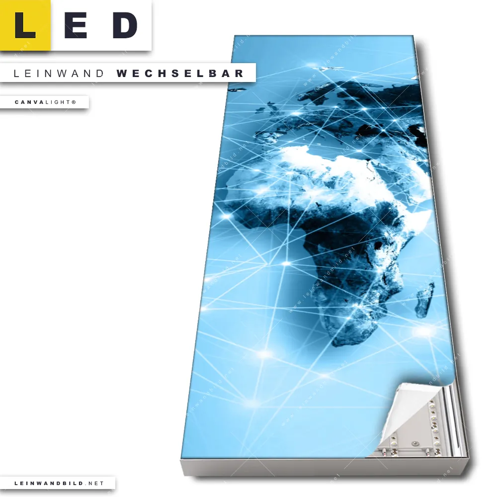 LED Leinwandbild Canvalight® TEX | Weltkarte Kommunikation | Schmal