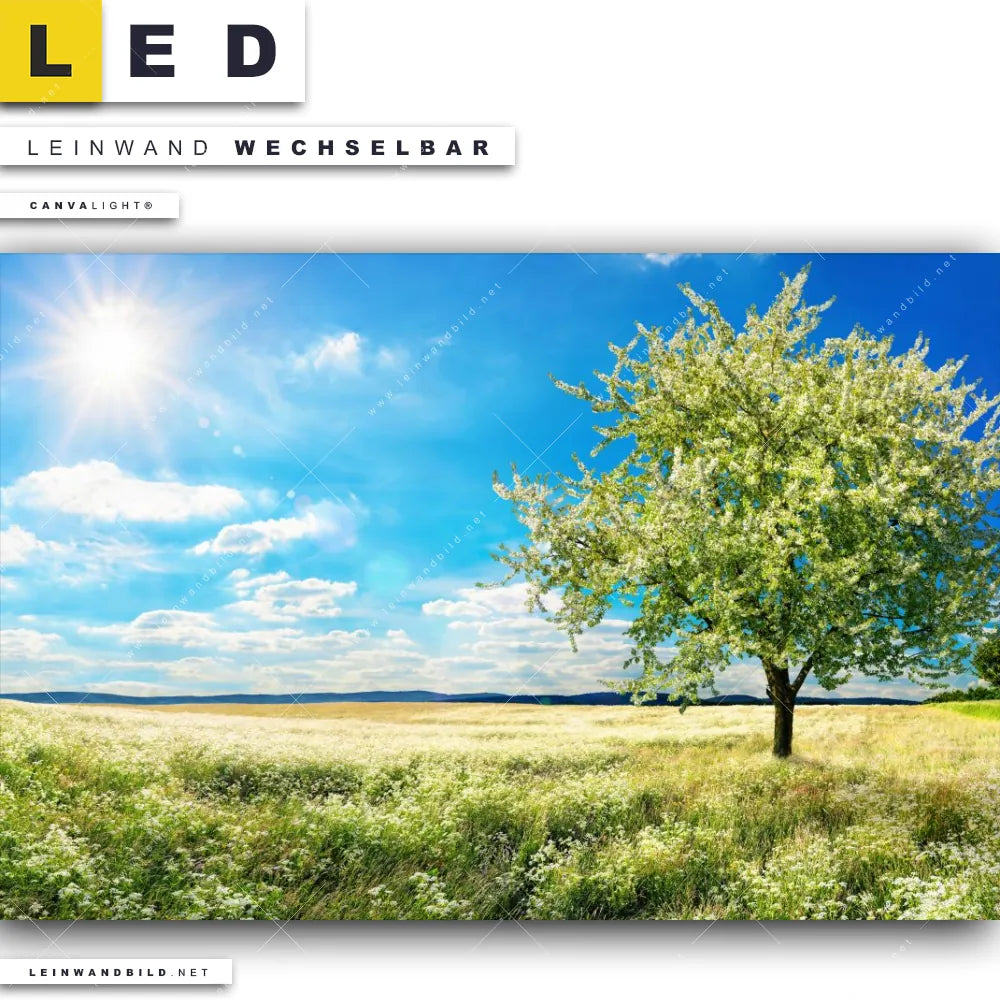 LED Leinwandbild Canvalight® TEX | Wiese mit blühendem Baum | Querformat