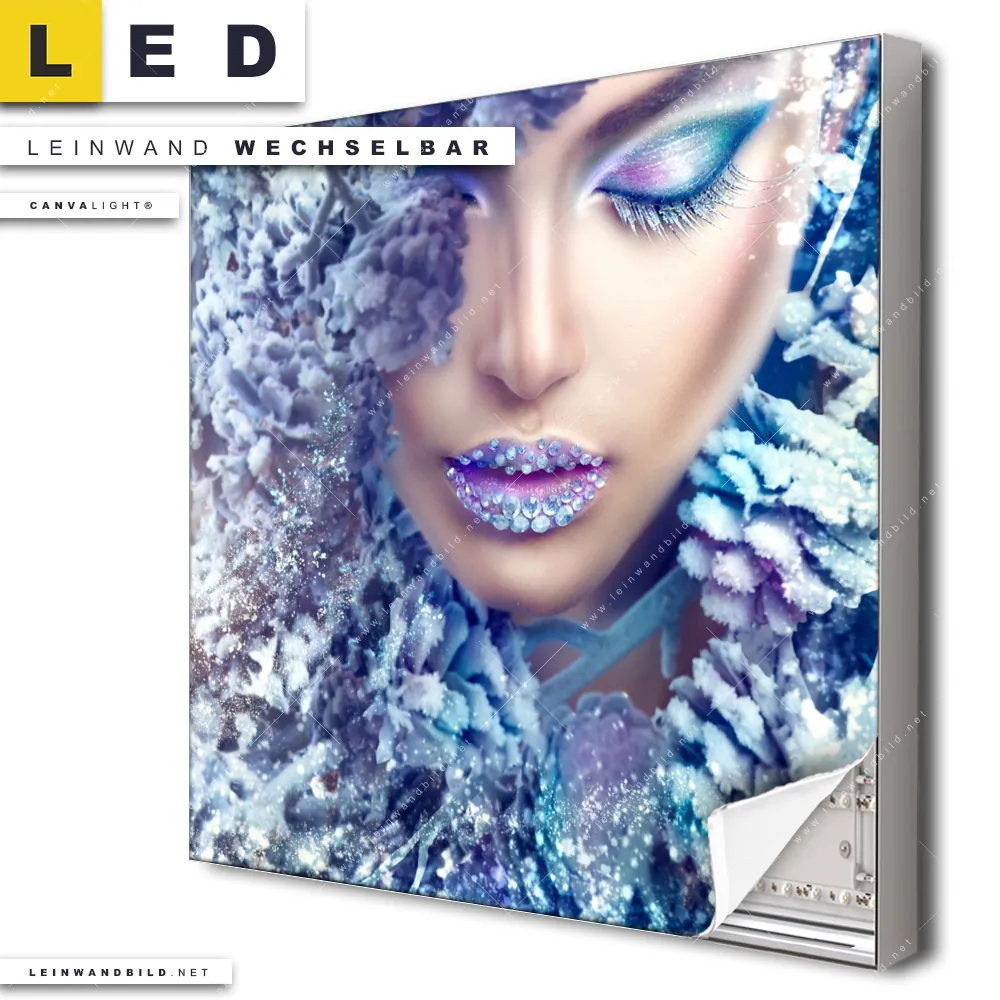 Du bist auf der Suche nach einem Porträts - Menschen LED Leinwandbild im Quadratischen Format? Begriffe wie Frau, Lippen, Mund, Porträt, modern, Beauty, Winter, Schnee, Gesicht, Eiszapfen, Weihnachten, Make-up, Schneeflocken haben Dich auf der Suche nach Deinem neuen XXL LED Wandbild mit wechselbarer Leinwand inspiriert? Farben wie Beige, Blau, Lila, Hellblau dürfen auf Deinem neuen Leinwand-LED-Bild nicht fehlen und Leuchtbilder im Mixed Media, Modern Art Stil passen perfekt zu Deinem Einrichtungsstil?
