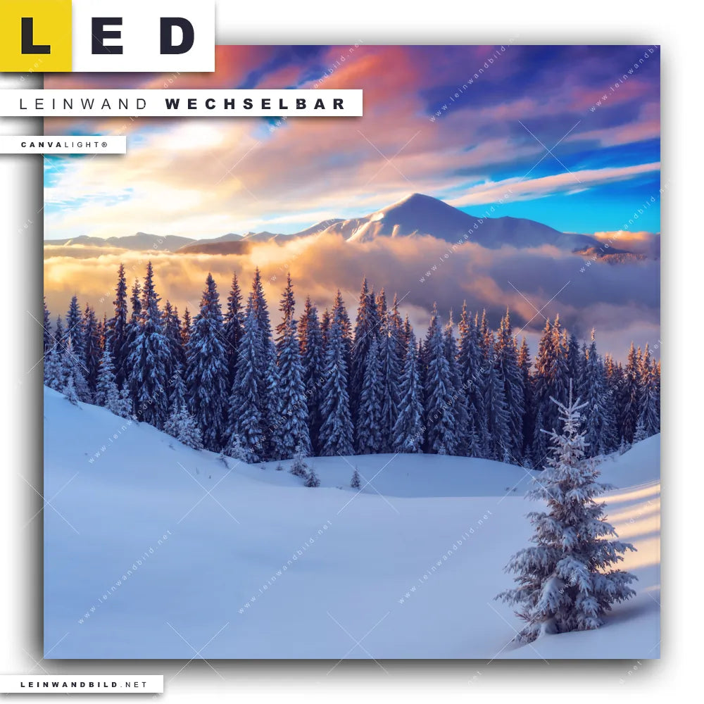 LED Leinwandbild Canvalight® TEX | Winterliches Gebirge | Quadrat