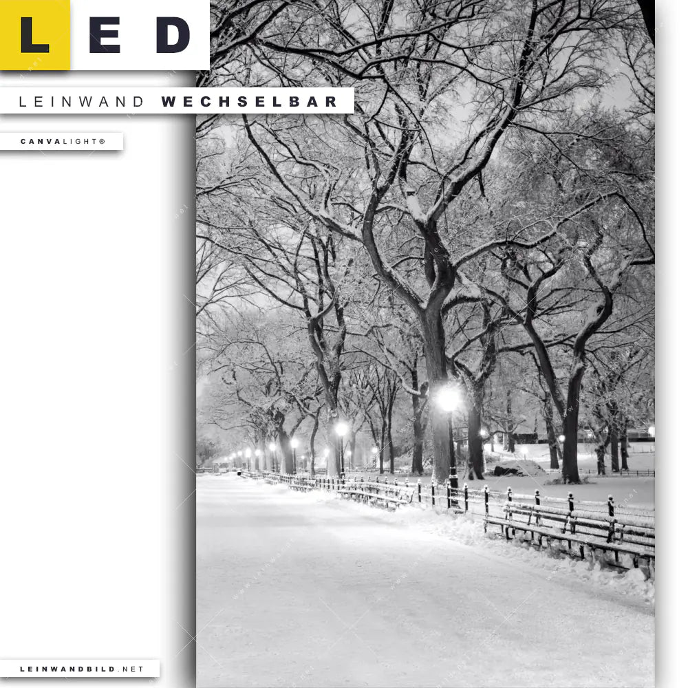 LED Leinwandbild Canvalight® TEX | Wintermorgen im Central Park | Hochformat