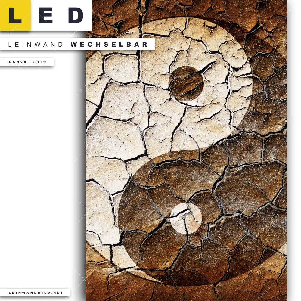 LED Leinwandbild Canvalight® TEX | Yin Yang auf rissiger Erde | Hochformat