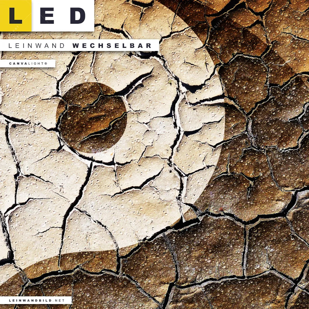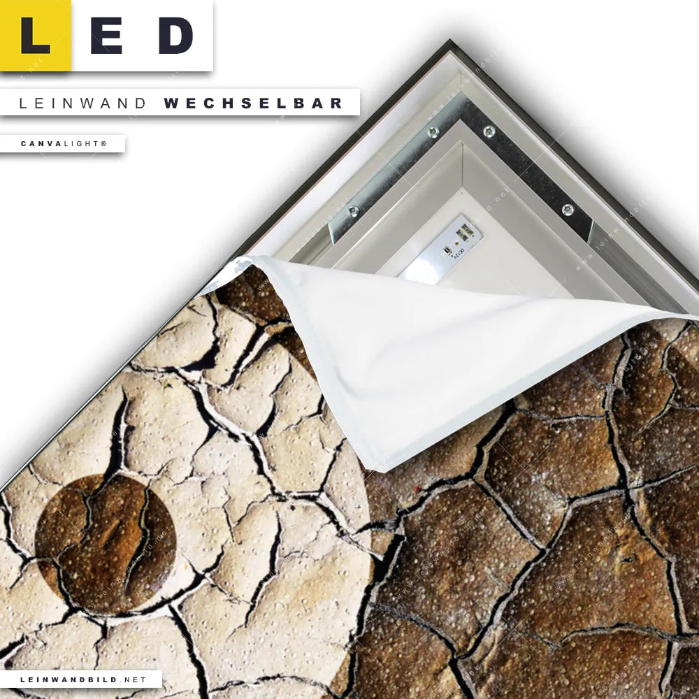 Du konfigurierst Dein individuelles LED Leinwandbild Canvalight® TEX | Yin Yang auf rissiger Erde | Querformat und wir produzieren es NEU für Dich. Unsere Buddha - Feng Shui LED Bilder mit wechselbarer Textil-Leinwand sind KEINE Lagerware. Du bist Dir unsicher, welches Motiv oder Format das richtige für dein individuelles Canvalight® Leuchtbild ist, dann helfen wir dir gerne weiter und beraten dich!
