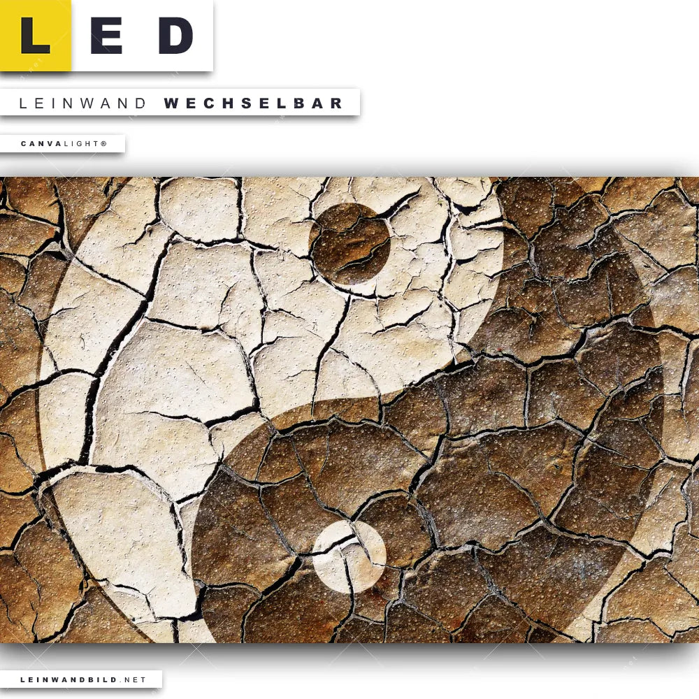 LED Leinwandbild Canvalight® TEX | Yin Yang auf rissiger Erde | Querformat