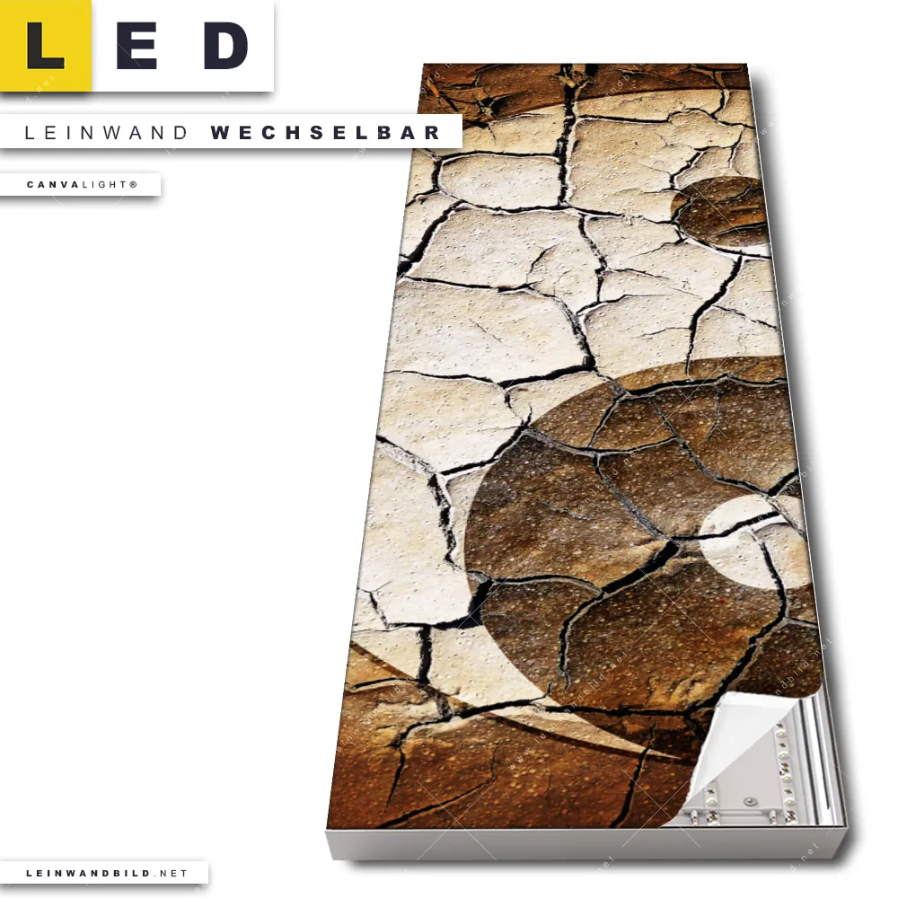 LED Leinwandbild Canvalight® TEX | Yin Yang auf rissiger Erde | Schmal