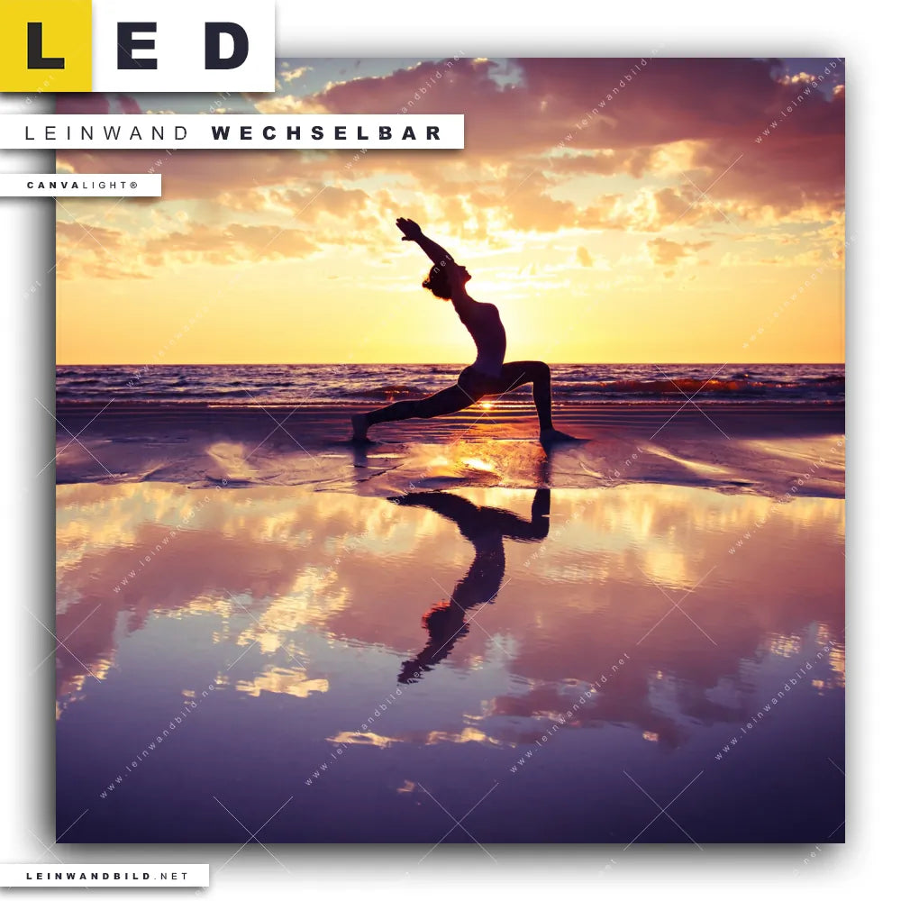 Bitte beachte, dass die Farben, der auf dem Monitor abgebildeten Entspannungsübungen im Sonnenuntergang am Strand Darstellung, möglicherweise von den Originalfarben deines LED Leinwandbildes abweichen können.