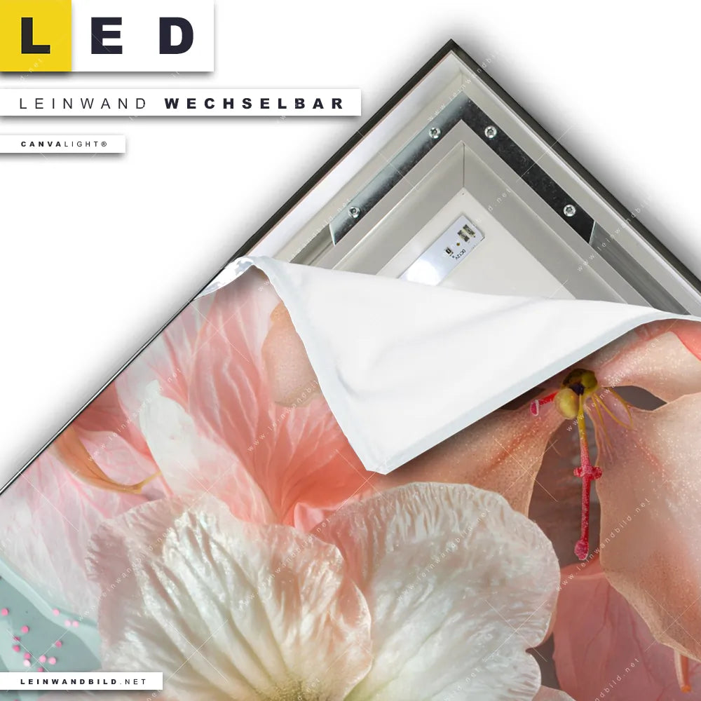 Du konfigurierst Dein individuelles LED Leinwandbild Canvalight® TEX | Zarte Blütenpracht | Quadrat und wir produzieren es NEU für Dich. Unsere Blumen - Botanik LED Bilder mit wechselbarer Textil-Leinwand sind KEINE Lagerware. Du bist Dir unsicher, welches Motiv oder Format das richtige für dein individuelles Canvalight® Leuchtbild ist, dann helfen wir dir gerne weiter und beraten dich!