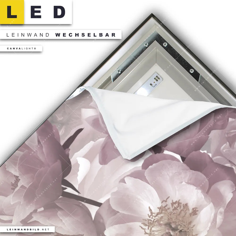 Du konfigurierst Dein individuelles LED Leinwandbild Canvalight® TEX | Zarte Blumen | Hochformat und wir produzieren es NEU für Dich. Unsere Blumen - Botanik LED Bilder mit wechselbarer Textil-Leinwand sind KEINE Lagerware. Du bist Dir unsicher, welches Motiv oder Format das richtige für dein individuelles Canvalight® Leuchtbild ist, dann helfen wir dir gerne weiter und beraten dich!
