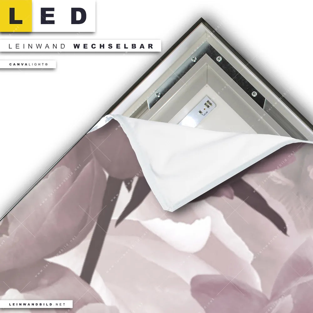 Du konfigurierst Dein individuelles LED Leinwandbild Canvalight® TEX | Zarte Blumen | Panorama und wir produzieren es NEU für Dich. Unsere Blumen - Botanik LED Bilder mit wechselbarer Textil-Leinwand sind KEINE Lagerware. Du bist Dir unsicher, welches Motiv oder Format das richtige für dein individuelles Canvalight® Leuchtbild ist, dann helfen wir dir gerne weiter und beraten dich!