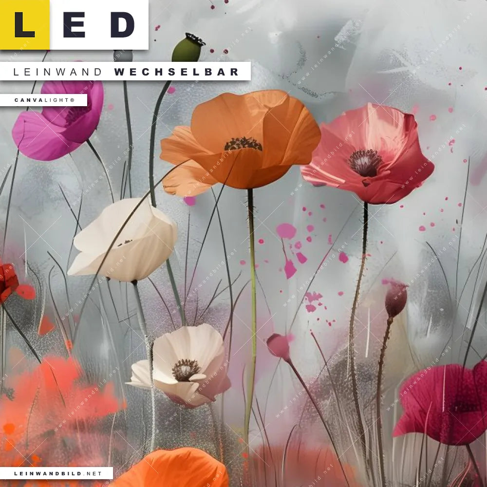 LED Leinwandbild Canvalight® TEX | Zarte Mohnblumen im Wind | Panorama