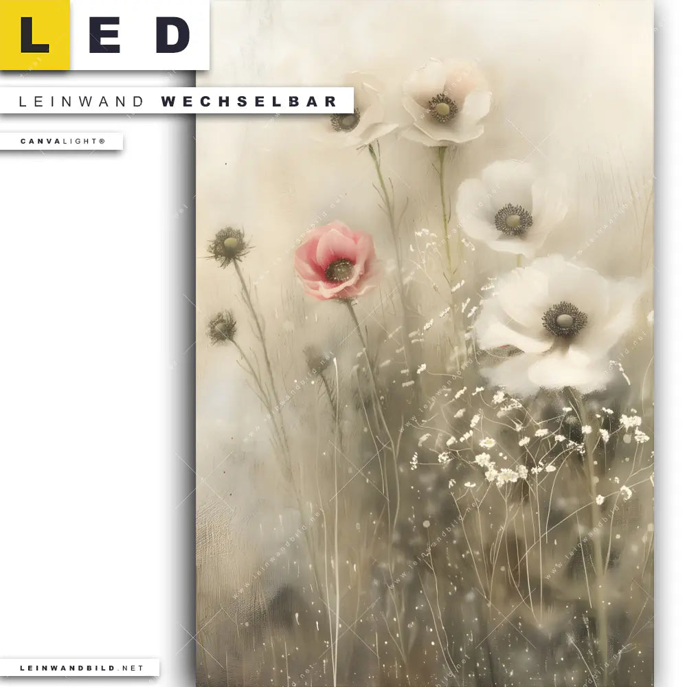 Du bist auf der Suche nach einem Blumen - Botanik, Landschaften LED Leinwandbild im Hochformat? Begriffe wie Pflanze, Natur, Blüten, Blumenwiese, Frühling, Romantik, Mohnblumen, Klatschmohn, Mohn haben Dich auf der Suche nach Deinem neuen XXL LED Wandbild mit wechselbarer Leinwand inspiriert? Farben wie Weiss, Rot, Beige, Braun dürfen auf Deinem neuen Leinwand-LED-Bild nicht fehlen und Leuchtbilder im Floral, Retro - Vintage, Abstrakt Stil passen perfekt zu Deinem Einrichtungsstil?