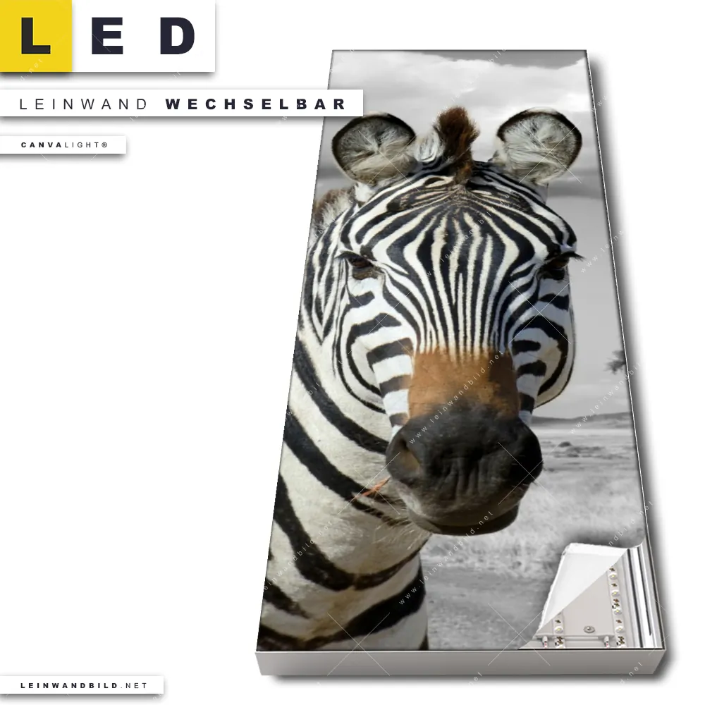Du konfigurierst Dein individuelles LED Leinwandbild Canvalight® TEX | Zebra in Afrika | Schmal und wir produzieren es NEU für Dich. Unsere Landschaften, Tierwelt LED Bilder mit wechselbarer Textil-Leinwand sind KEINE Lagerware. Du bist Dir unsicher, welches Motiv oder Format das richtige für dein individuelles Canvalight® Leuchtbild ist, dann helfen wir dir gerne weiter und beraten dich!