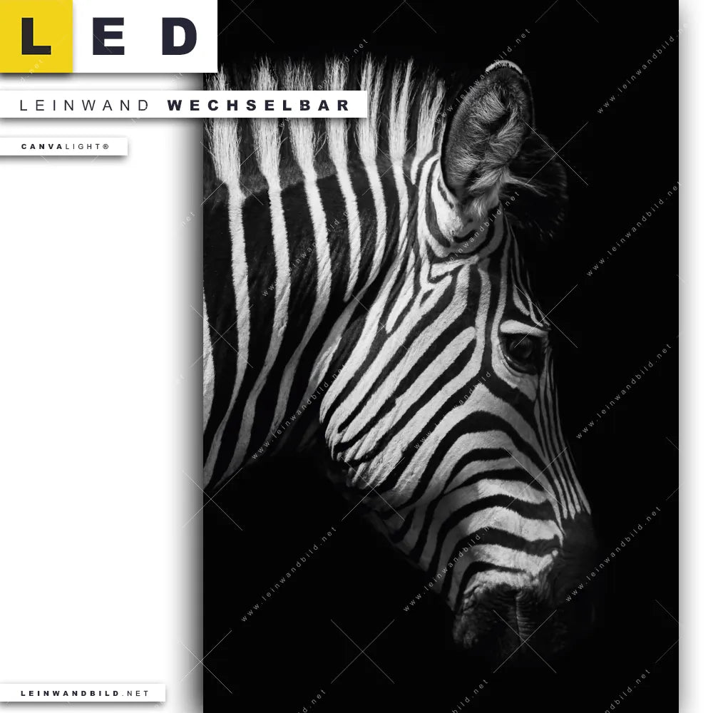 LED Leinwandbild Canvalight® TEX | Zebra Schwarzweiß | Hochformat