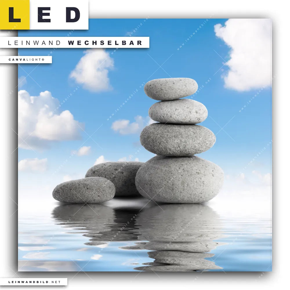 Du bist auf der Suche nach einem Buddha - Feng Shui LED Leinwandbild im Quadratischen Format? Begriffe wie Buddhismus, Religion, Feng Shui, Zen, Meditation, Steine, Zensteine, Himmel Wolken, Turm, gestapelt, Wasser, Spiegelung, Wasserspiegelung haben Dich auf der Suche nach Deinem neuen XXL LED Wandbild mit wechselbarer Leinwand inspiriert? Farben wie Blau, Weiss, Hellblau dürfen auf Deinem neuen Leinwand-LED-Bild nicht fehlen und Leuchtbilder im Mixed Media, Modern Art Stil passen perfekt zu Deinem Einrichtungsstil?