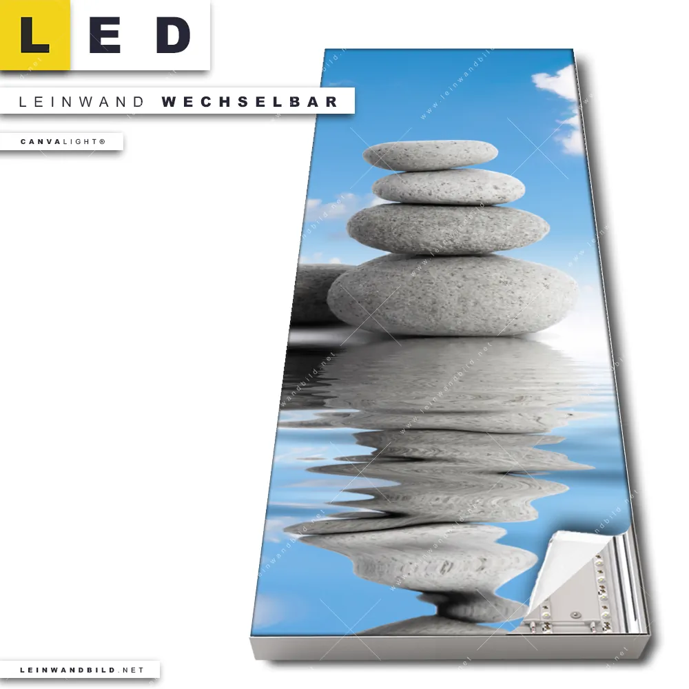 Du konfigurierst Dein individuelles LED Leinwandbild Canvalight® TEX | Zen Spa Steine | Schmal und wir produzieren es NEU für Dich. Unsere Buddha - Feng Shui LED Bilder mit wechselbarer Textil-Leinwand sind KEINE Lagerware. Du bist Dir unsicher, welches Motiv oder Format das richtige für dein individuelles Canvalight® Leuchtbild ist, dann helfen wir dir gerne weiter und beraten dich!