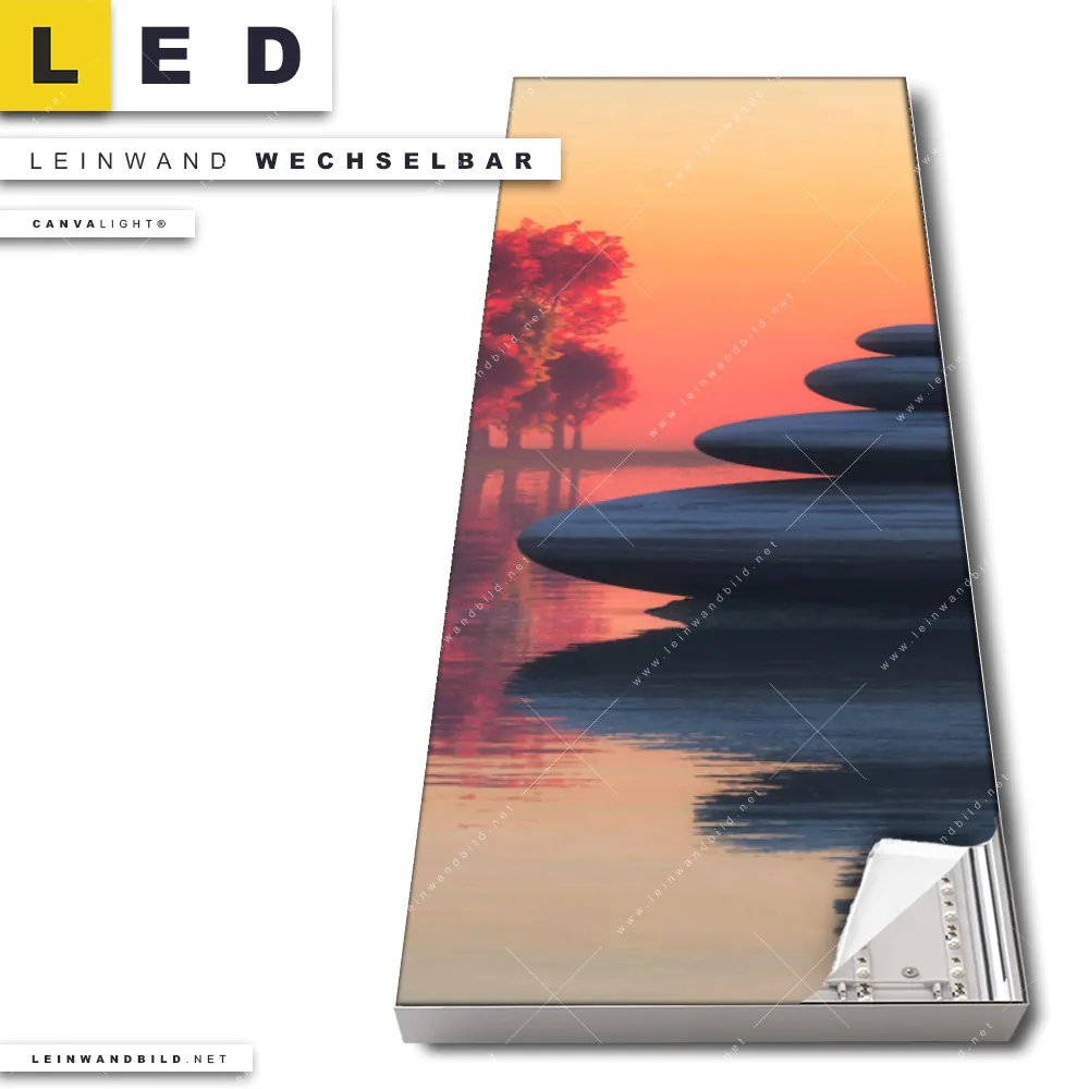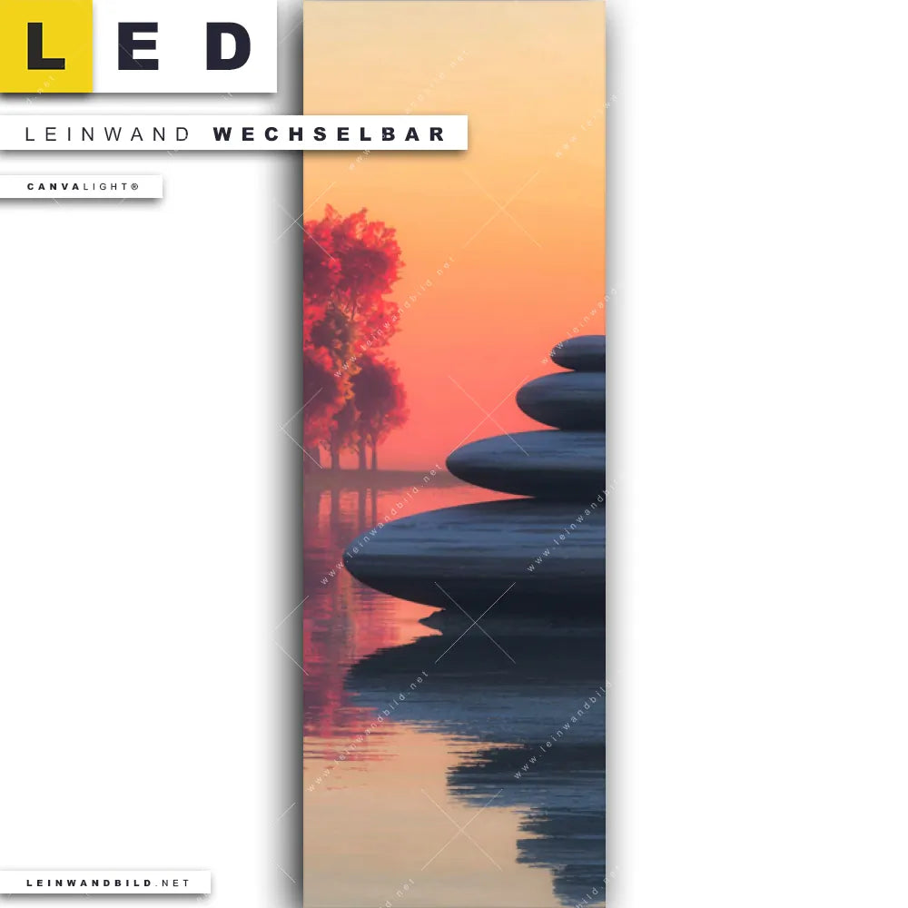 LED Leinwandbild Canvalight® TEX | Zen Steine & Sonnenuntergang | Schmal