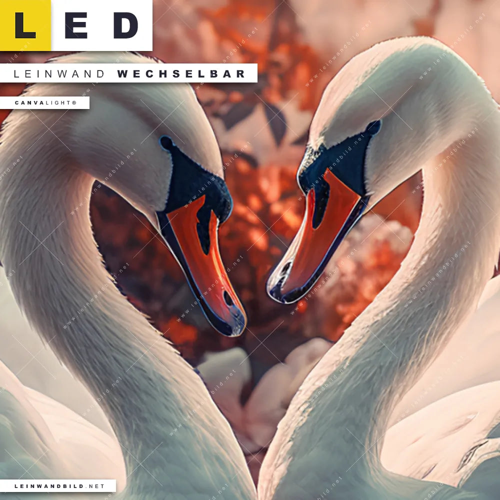 Du bist auf der Suche nach einem Tierwelt LED Leinwandbild im Quadratischen Format? Begriffe wie Vogel, Schwan, Wasser, Liebe, Blumen, See haben Dich auf der Suche nach Deinem neuen XXL LED Wandbild mit wechselbarer Leinwand inspiriert? Farben wie Weiss, Rot, Orange, Blau dürfen auf Deinem neuen Leinwand-LED-Bild nicht fehlen und Leuchtbilder im Geometrisch, Modern Art Stil passen perfekt zu Deinem Einrichtungsstil?