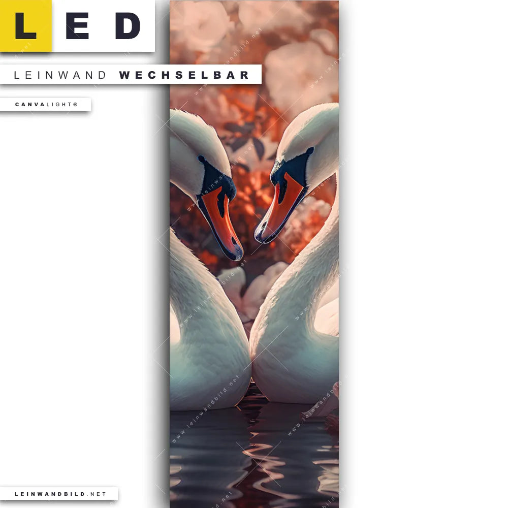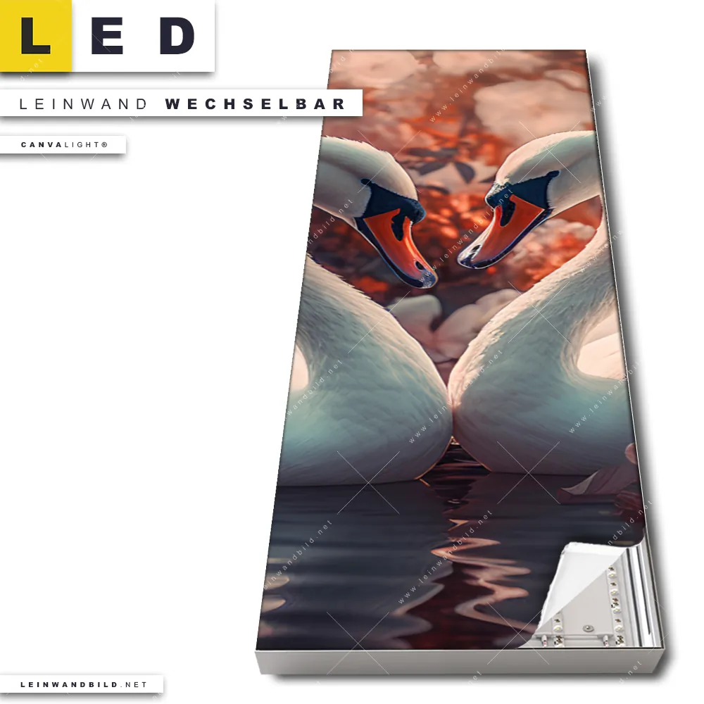 LED Leinwandbild Canvalight® TEX | Zwei Schwäne im Wasser | Schmal