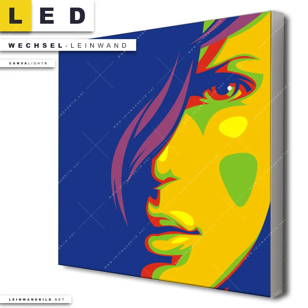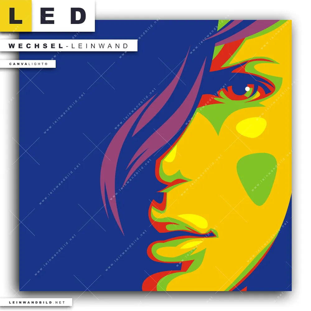 Du bist auf der Suche nach einer Porträts - Menschen Wechsel-Leinwand für Dein LED-Leinwandbild im Quadratischen Format? Begriffe wie Abstrakt, Modern, Kunst, Frau, Portrait, Gesicht, Kopf, Mädchen, Augen, Haare, Lippen haben Dich auf der Suche nach Deiner Ersatz-Leinwand für dein LED Wandbild mit wechselbarer Leinwand inspiriert? Farben wie Blau, Grün, Rot, Gelb dürfen auf Deinem neuen Wechselmotiv für Dein XXL Leinwand-LED-Bild nicht fehlen und Leinwände im Abstrakt, Modern Art Stil für Leuchtbilder passen perfekt zu Deinem Einrichtungsstil?