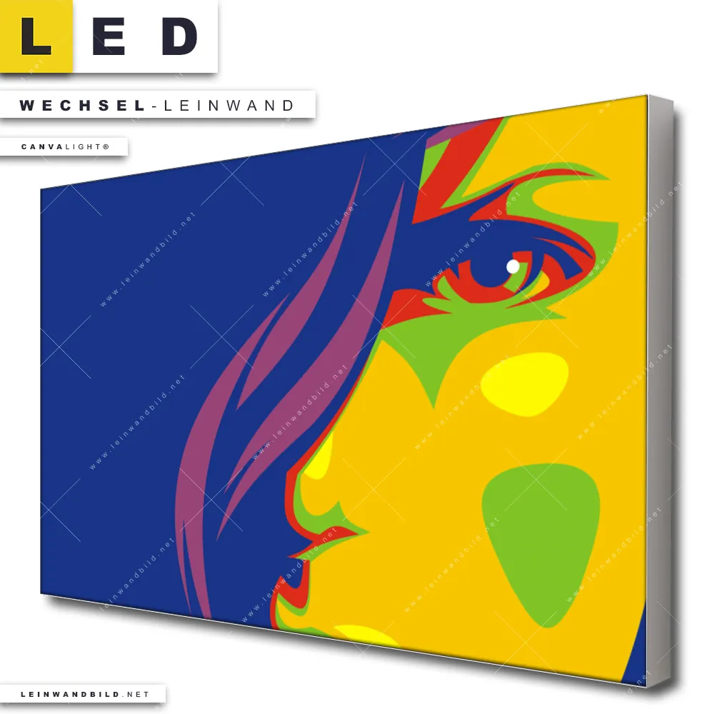 Du bist auf der Suche nach einer Porträts - Menschen Wechsel-Leinwand für Dein LED-Leinwandbild im Querformat? Begriffe wie Abstrakt, Modern, Kunst, Frau, Portrait, Gesicht, Kopf, Mädchen, Augen, Haare, Lippen haben Dich auf der Suche nach Deiner Ersatz-Leinwand für dein breites LED Wandbild mit wechselbarer Leinwand inspiriert? Farben wie Blau, Grün, Rot, Gelb dürfen auf Deinem neuen Wechselmotiv für Dein XXL Leinwand-LED-Bild nicht fehlen und Leinwände im Abstrakt, Modern Art Stil für Leuchtbilder passen perfekt zu Deinem Einrichtungsstil?
