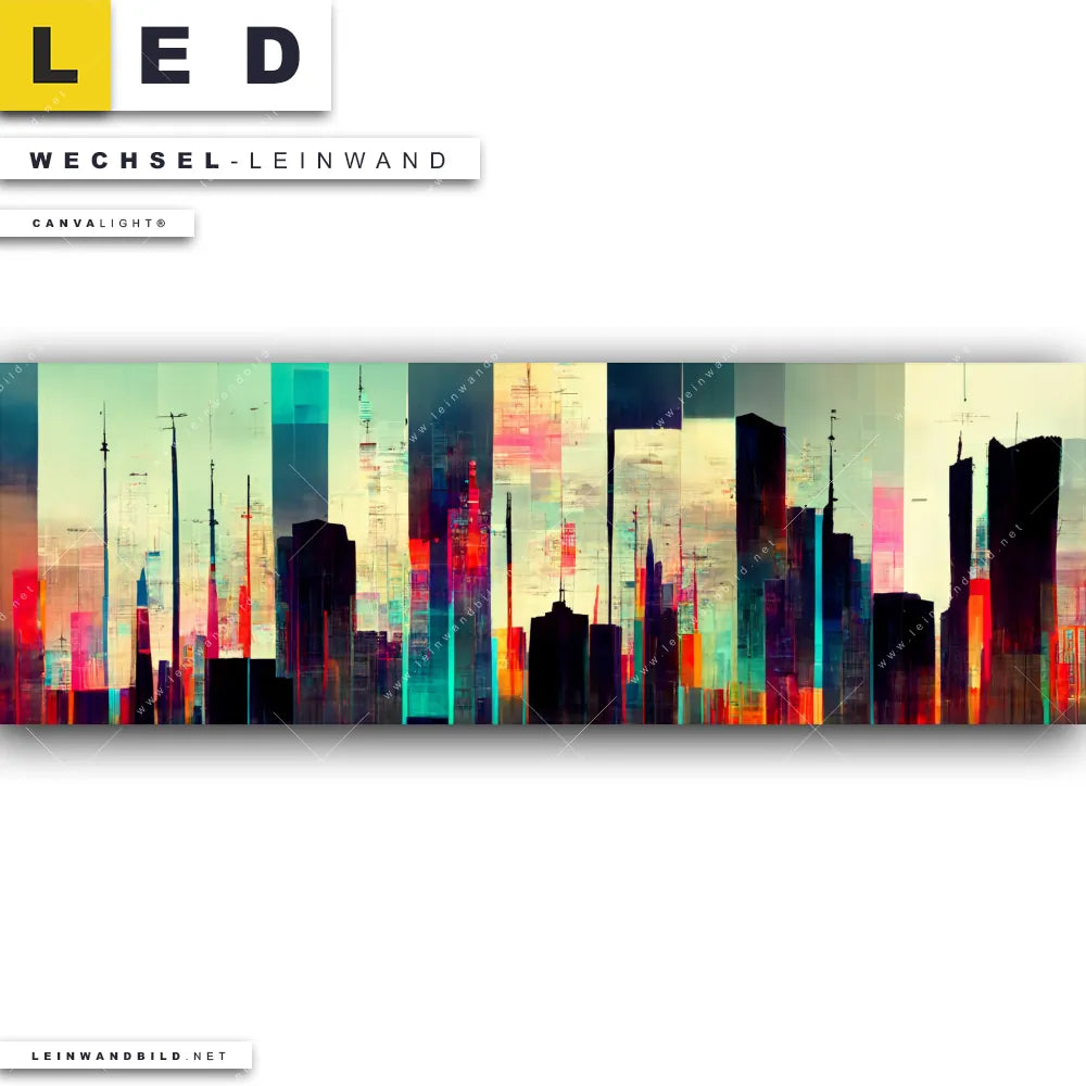 LED Wechsel-Leinwand Canvalight® TEX | Abstrakte Skyline No.3 | Panorama