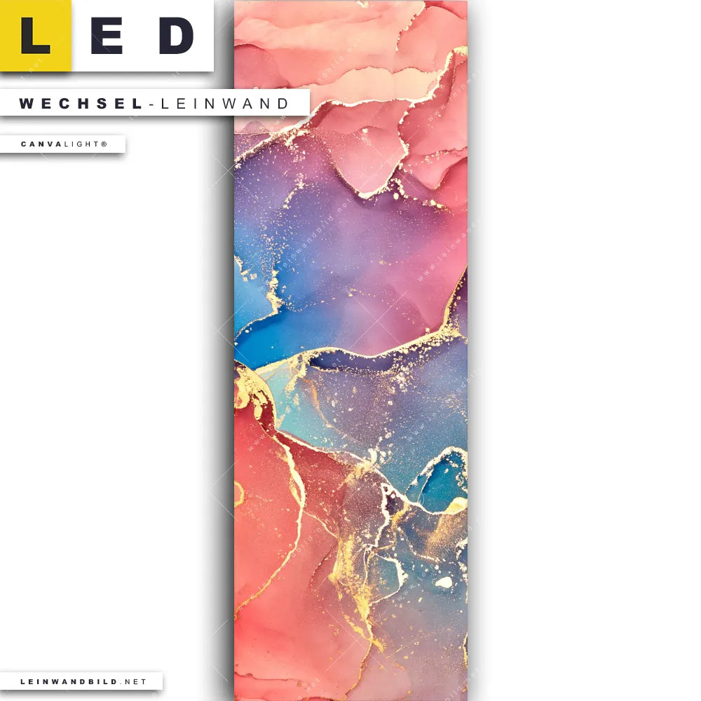 Du bist auf der Suche nach einer Muster - Texturen Wechsel-Leinwand für Dein LED-Leinwandbild im Schmalen Format? Begriffe wie Marmor, Flüssigkeit, Acryl, flüssig, Farbe, Marmorierung, Fluid Art haben Dich auf der Suche nach Deiner Ersatz-Leinwand für dein LED Wandbild im Panorama-Hochformat mit wechselbarer Leinwand inspiriert? Farben wie Gold, Rosa, Hellblau, Blau dürfen auf Deinem neuen Wechselmotiv für Dein XXL Leinwand-LED-Bild nicht fehlen und Leinwände im Abstrakt, Modern Art Stil für Leuchtbilder passen perfekt zu Deinem Einrichtungsstil?
