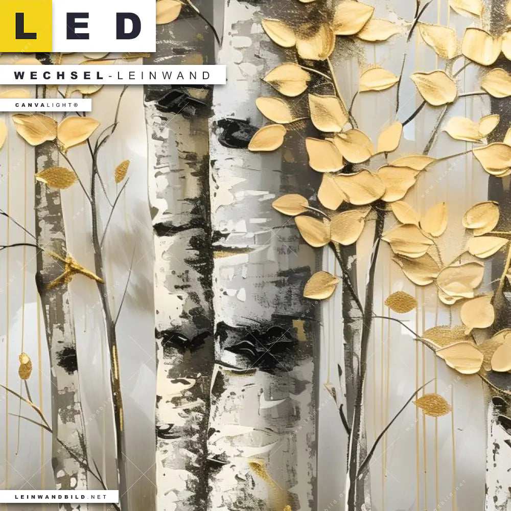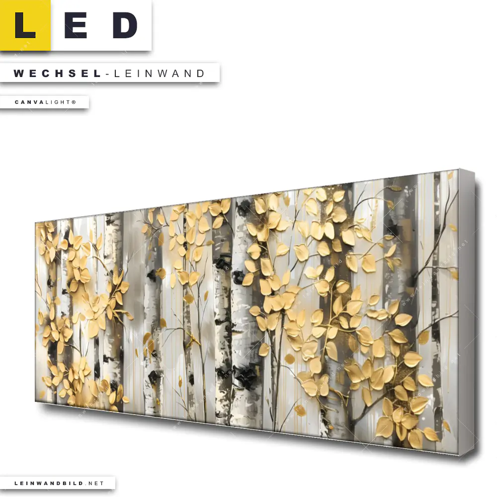 Du bist auf der Suche nach einer Landschaften, Wald - Bäume Wechsel-Leinwand für Dein LED-Leinwandbild im Panorama-Format? Begriffe wie Wald, Landschaft, Bäume, Natur, Birken, Birkenwald, Blätter haben Dich auf der Suche nach Deiner Ersatz-Leinwand für dein extra breites LED Wandbild mit wechselbarer Leinwand inspiriert? Farben wie Weiss, Beige, Grau , Gold dürfen auf Deinem neuen Wechselmotiv für Dein XXL Leinwand-LED-Bild nicht fehlen und Leinwände im Modern Art, Abstrakt, Floral Stil für Leuchtbilder passen perfekt zu Deinem Einrichtungsstil?