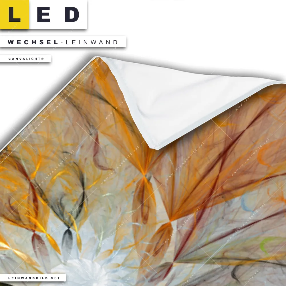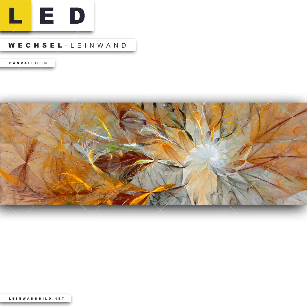 LED Wechsel-Leinwand Canvalight® TEX | Abstrakter Blütenzauber in orange | Panorama