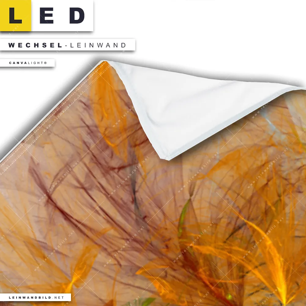 LED Wechsel-Leinwand Canvalight® TEX | Abstrakter Blütenzauber in orange | Schmal