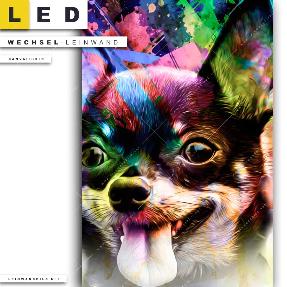 LED Wechsel-Leinwand Canvalight® TEX | Abstrakter Chihuahua | Hochformat