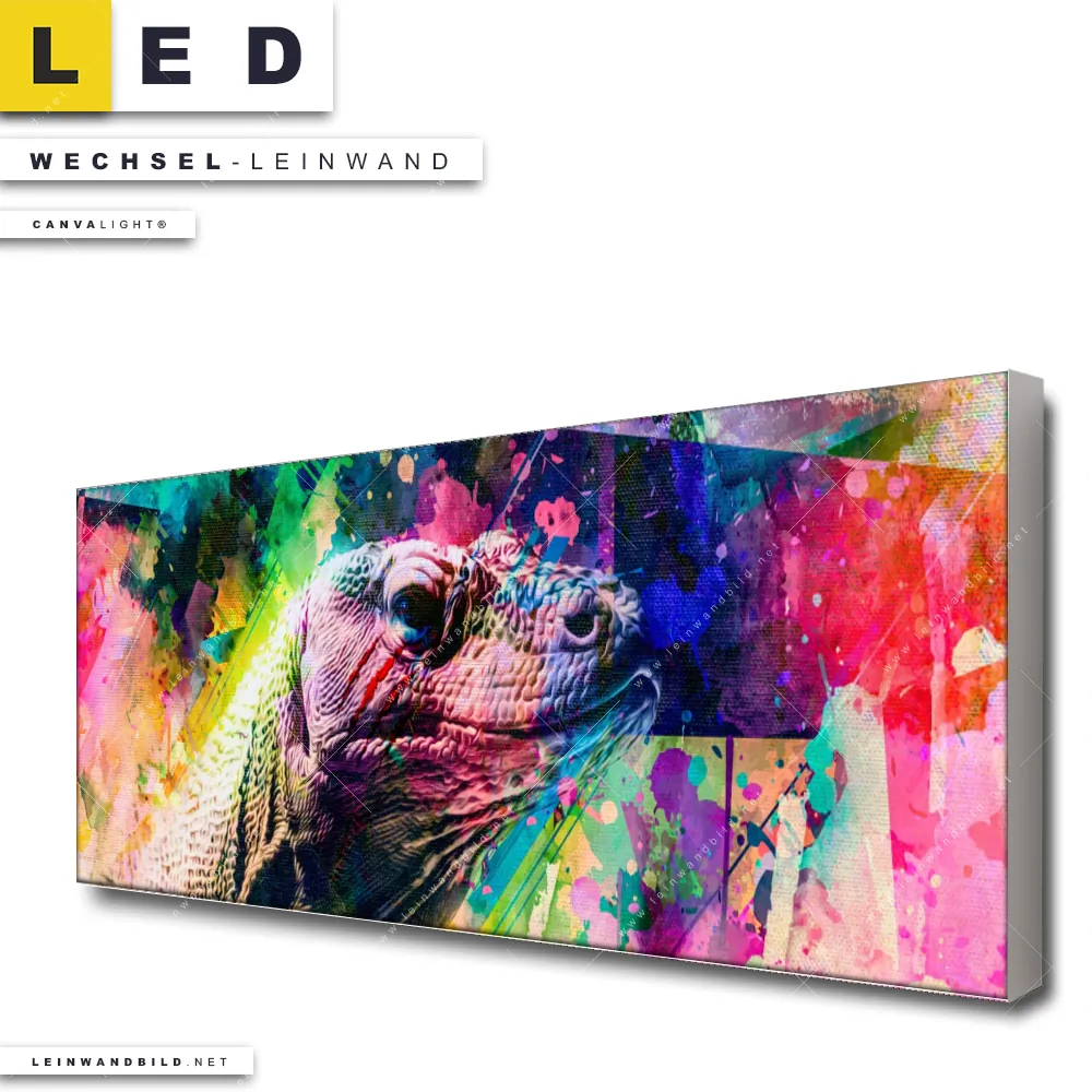 Du bist auf der Suche nach einer Tierwelt Wechsel-Leinwand für Dein LED-Leinwandbild im Panorama-Format? Begriffe wie Leguan, Reptil, Tier haben Dich auf der Suche nach Deiner Ersatz-Leinwand für dein extra breites LED Wandbild mit wechselbarer Leinwand inspiriert? Farben wie Bunt dürfen auf Deinem neuen Wechselmotiv für Dein XXL Leinwand-LED-Bild nicht fehlen und Leinwände im Abstrakt, Grunge, Mixed Media, Modern Art, Pop Art, Street Art Stil für Leuchtbilder passen perfekt zu Deinem Einrichtungsstil?