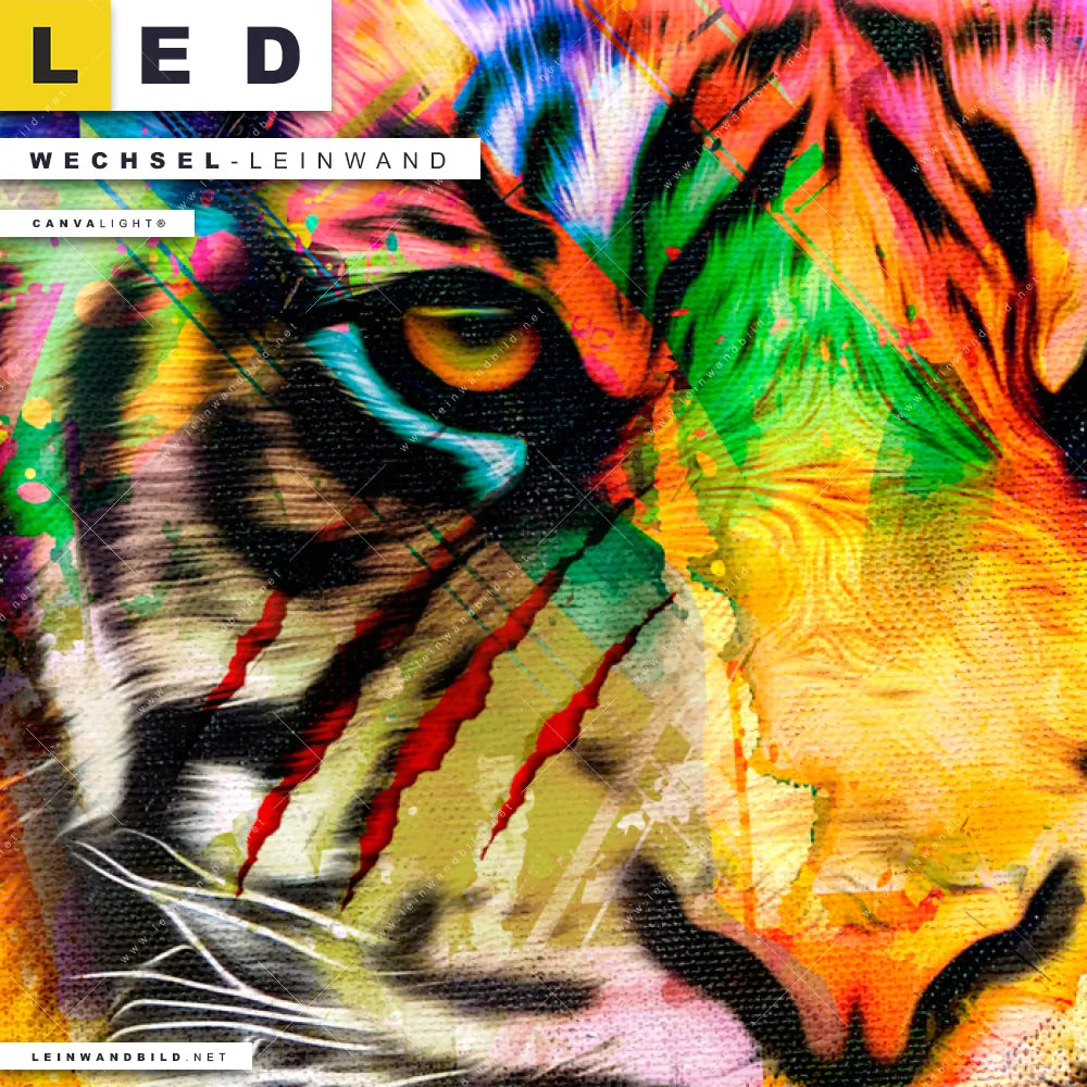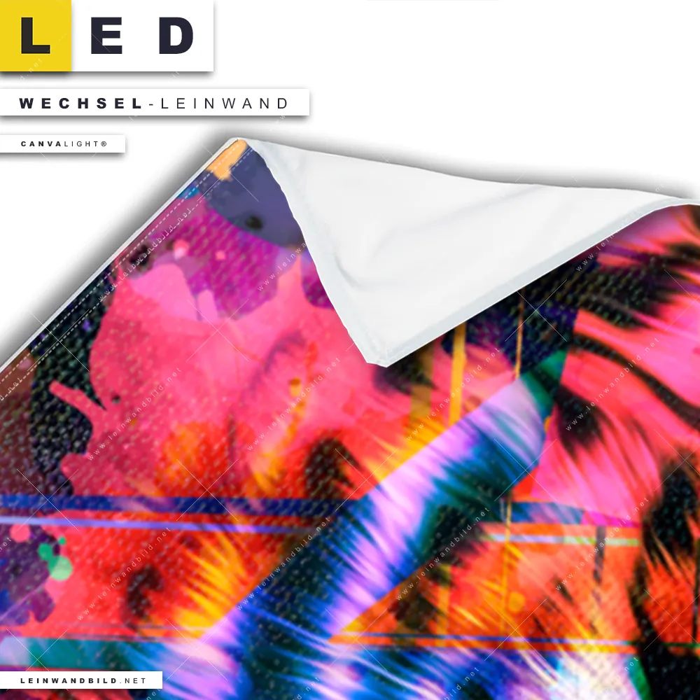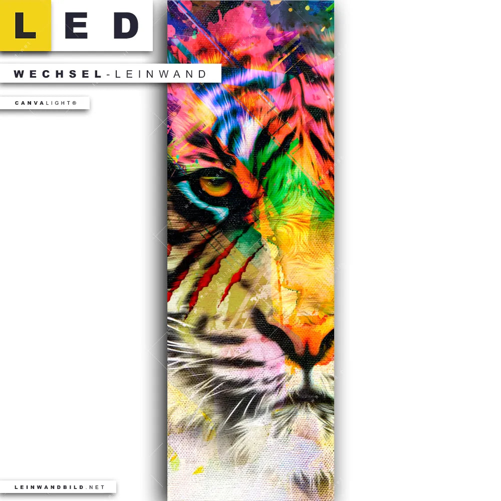 Du bist auf der Suche nach einer Tierwelt Wechsel-Leinwand für Dein LED-Leinwandbild im Schmalen Format? Begriffe wie Raubkatze, Tiger, Afrika, Dschungel, Farbspritzer, Farbe, Farbexplosion, Portät haben Dich auf der Suche nach Deiner Ersatz-Leinwand für dein LED Wandbild im Panorama-Hochformat mit wechselbarer Leinwand inspiriert? Farben wie Bunt dürfen auf Deinem neuen Wechselmotiv für Dein XXL Leinwand-LED-Bild nicht fehlen und Leinwände im Abstrakt, Modern Art, Pop Art, Street Art Stil für Leuchtbilder passen perfekt zu Deinem Einrichtungsstil?