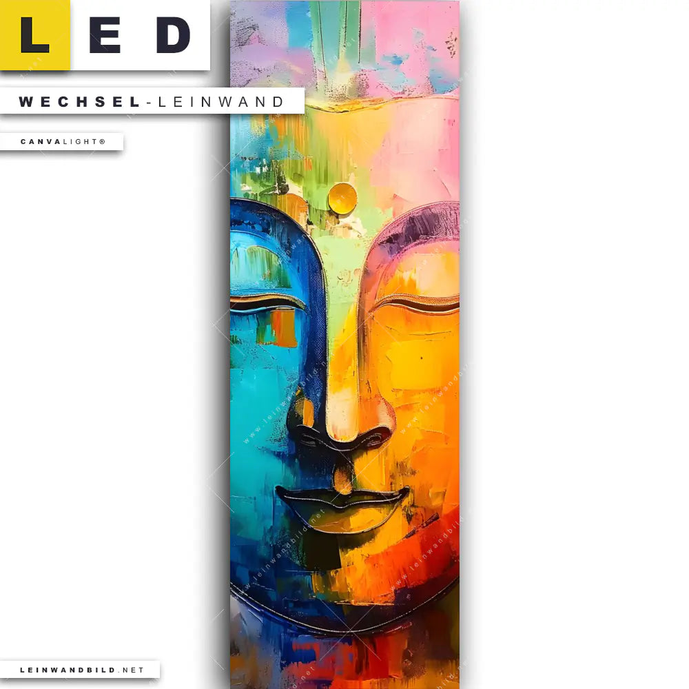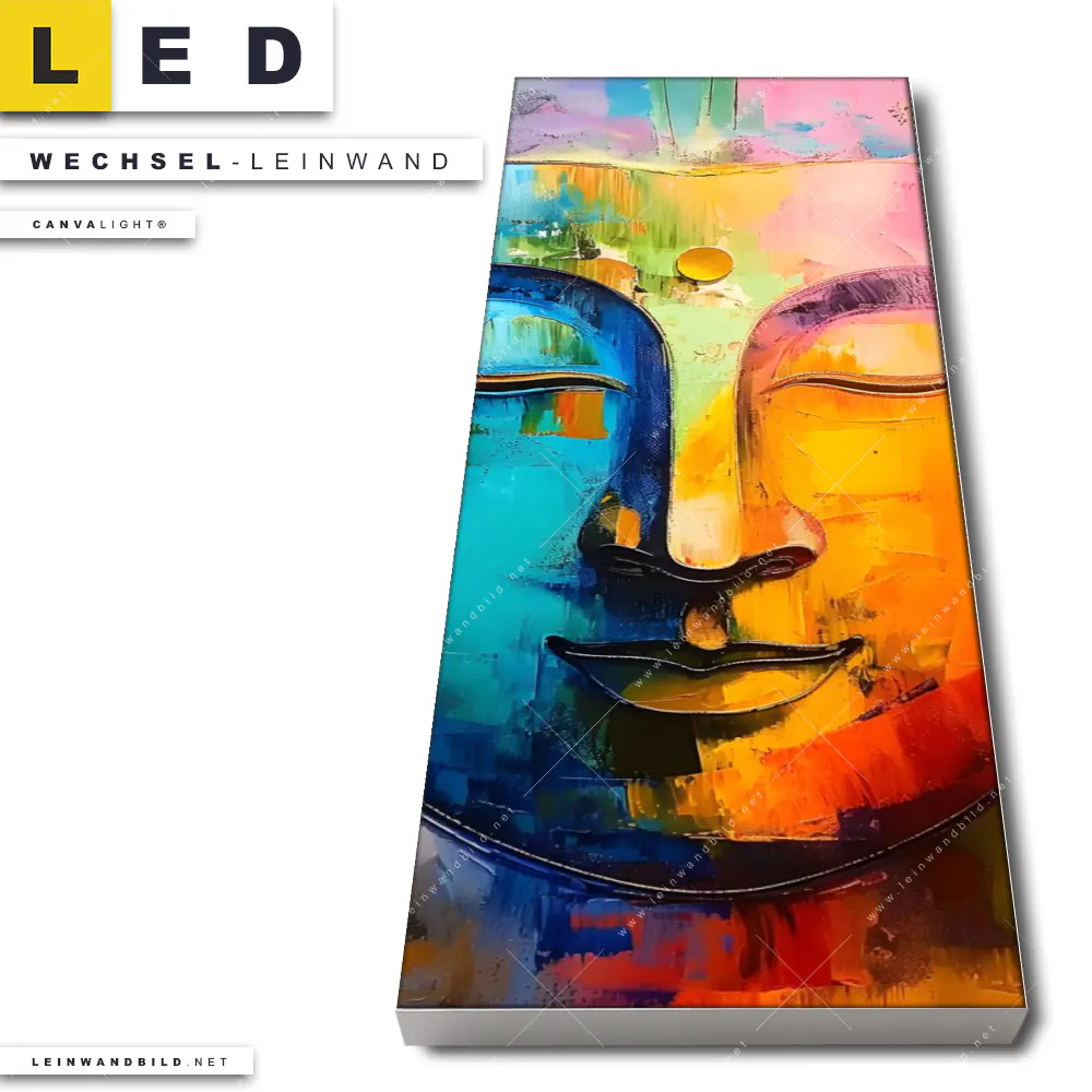 LED Wechsel-Leinwand Canvalight® TEX | Abstraktes Buddha-Gesicht | Schmal