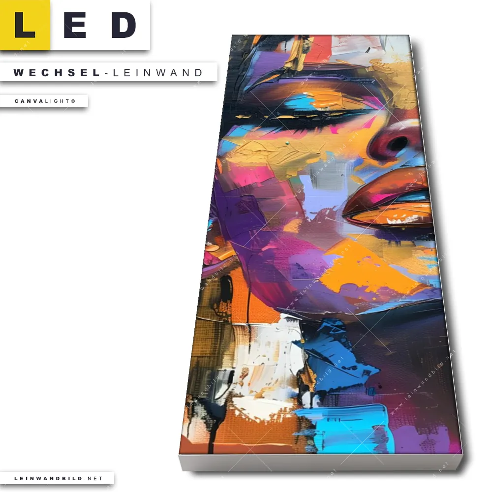 LED Wechsel-Leinwand Canvalight® TEX | Abstraktes Frauenporträt Dilara | Schmal