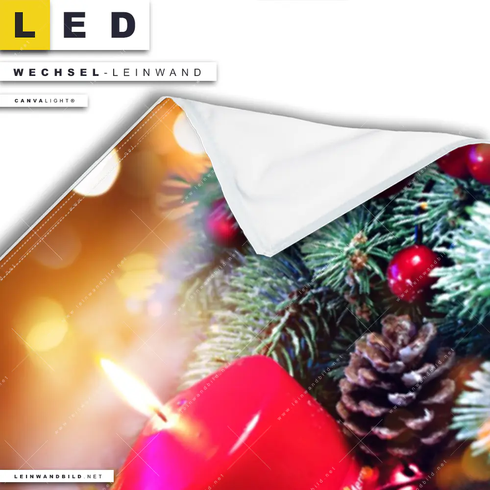 LED Wechsel-Leinwand Canvalight® TEX | Adventskerze mit Weihnachtsschmuck | Panorama