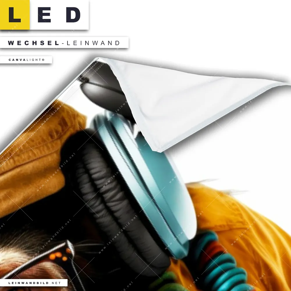 Du konfigurierst Deine individuelle LED Wechsel-Leinwand Canvalight® TEX | Affe mit Kopfhörern & Brille | Panorama und wir produzieren sie NEU für Dich. Unsere Tierwelt Austausch-Fotoleinwände für Canvalight® LED Bilder sind KEINE Lagerware. Du bist Dir unsicher, welches Motiv oder Format das richtige für dein individuelles LED Wechselmotiv auf Leinwand ist, dann helfen wir dir gerne weiter und beraten dich!