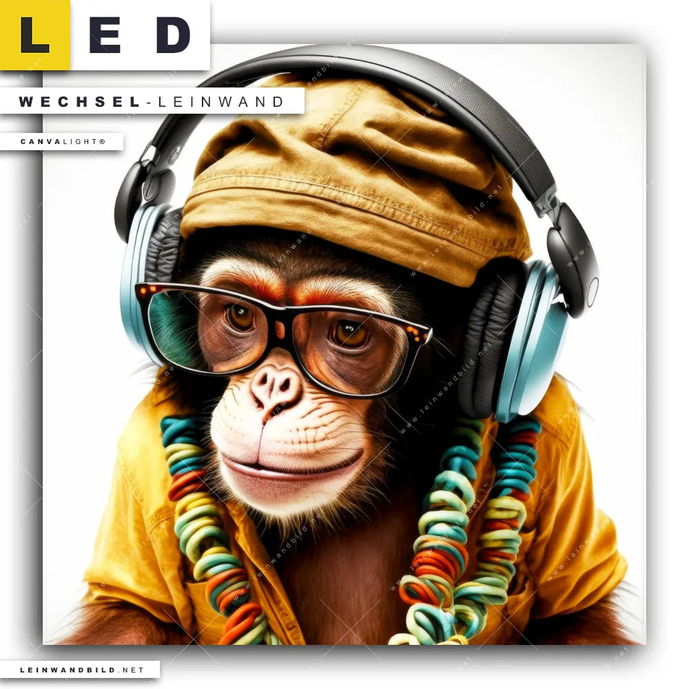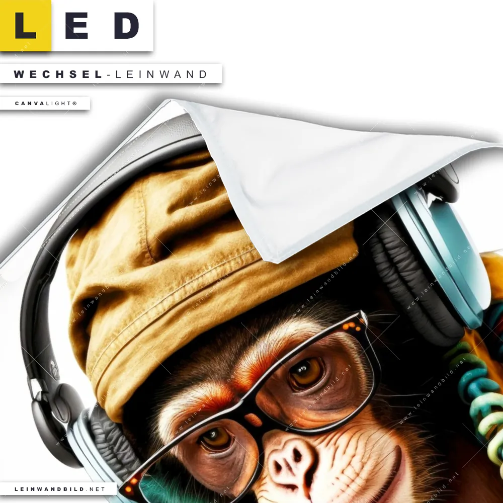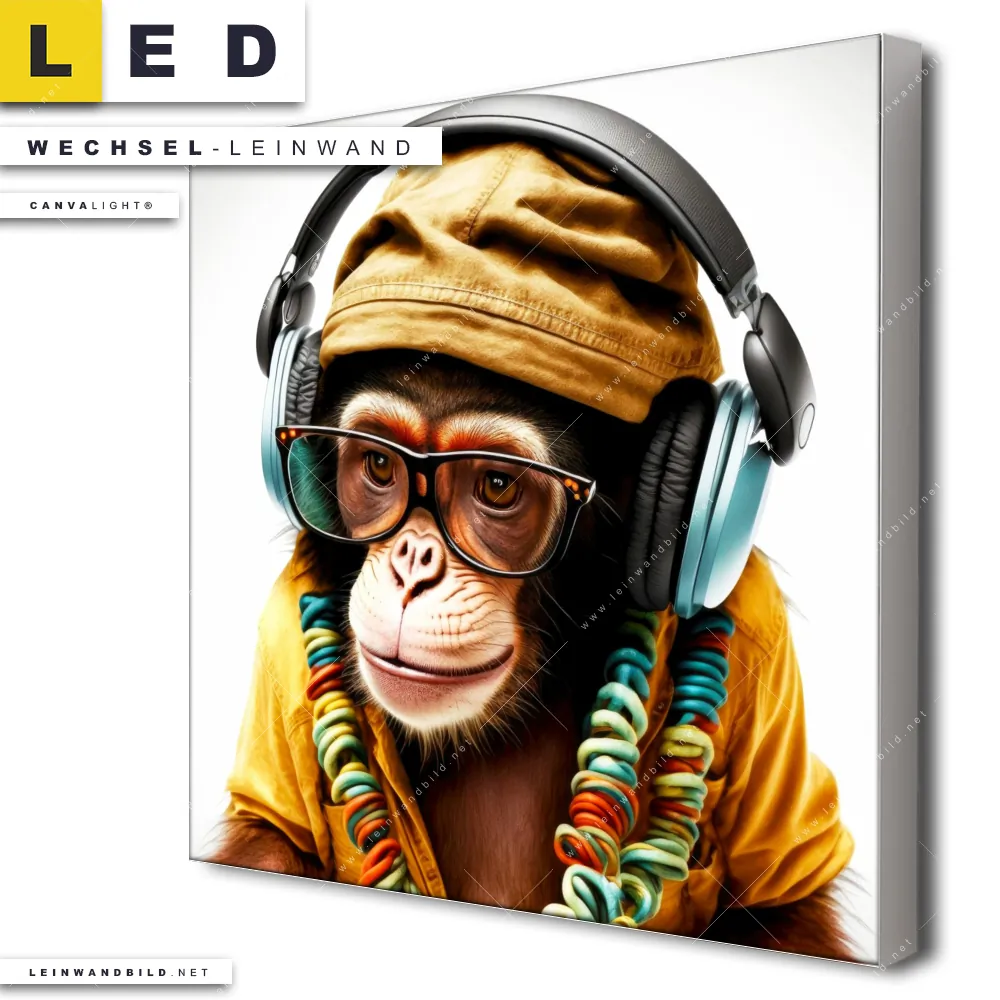 LED Wechsel-Leinwand Canvalight® TEX | Affe mit Kopfhörern & Brille | Quadrat