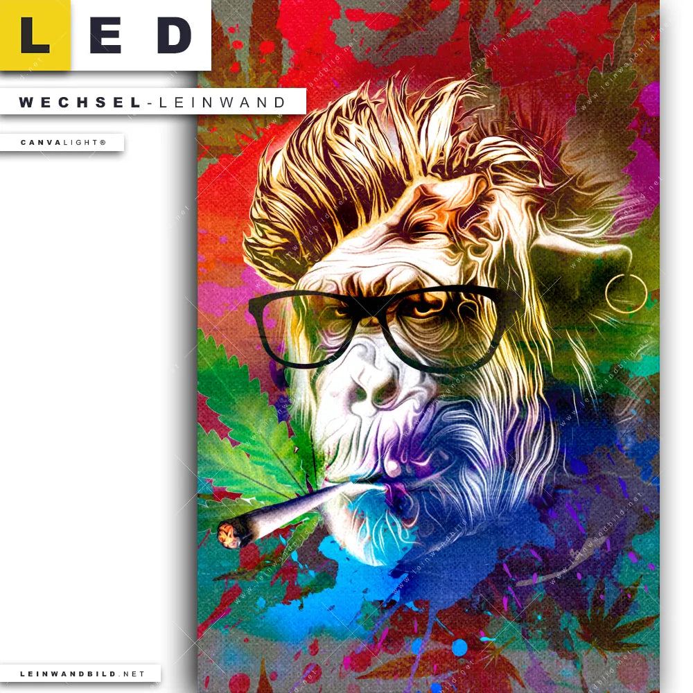 Du bist auf der Suche nach einer Tierwelt Wechsel-Leinwand für Dein LED-Leinwandbild im Hochformat? Begriffe wie Tier, Affe, Monkey, Brille, Sonnenbrille, cool, Zigarette, rauchen, Cannabis, Piercing haben Dich auf der Suche nach Deiner Ersatz-Leinwand für dein LED Wandbild mit wechselbarer Leinwand inspiriert? Farben wie Bunt dürfen auf Deinem neuen Wechselmotiv für Dein XXL Leinwand-LED-Bild nicht fehlen und Leinwände im Abstrakt, Mixed Media, Modern Art, Pop Art, Street Art Stil für Leuchtbilder passen perfekt zu Deinem Einrichtungsstil?