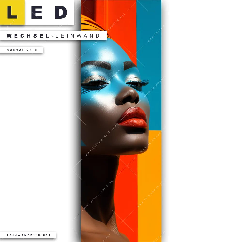 LED Wechsel-Leinwand Canvalight® TEX | Afrikanische Frau mit Turban | Schmal